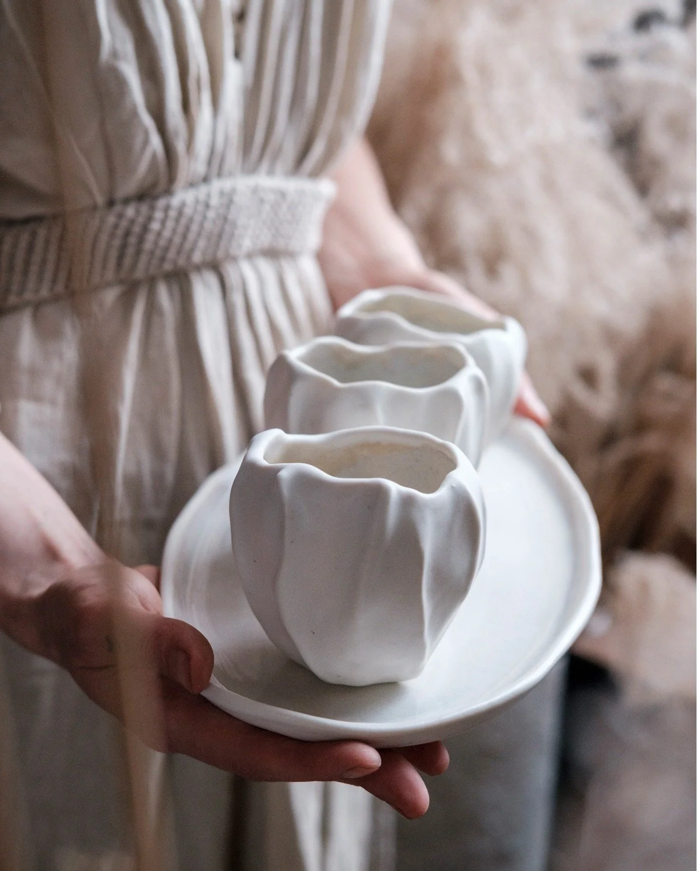 I make tableware that brings quiet beauty into everyday life. I pray for a future where all things around us are made in the spirit of gratitude and joy, honouring nature and everything upon it.”