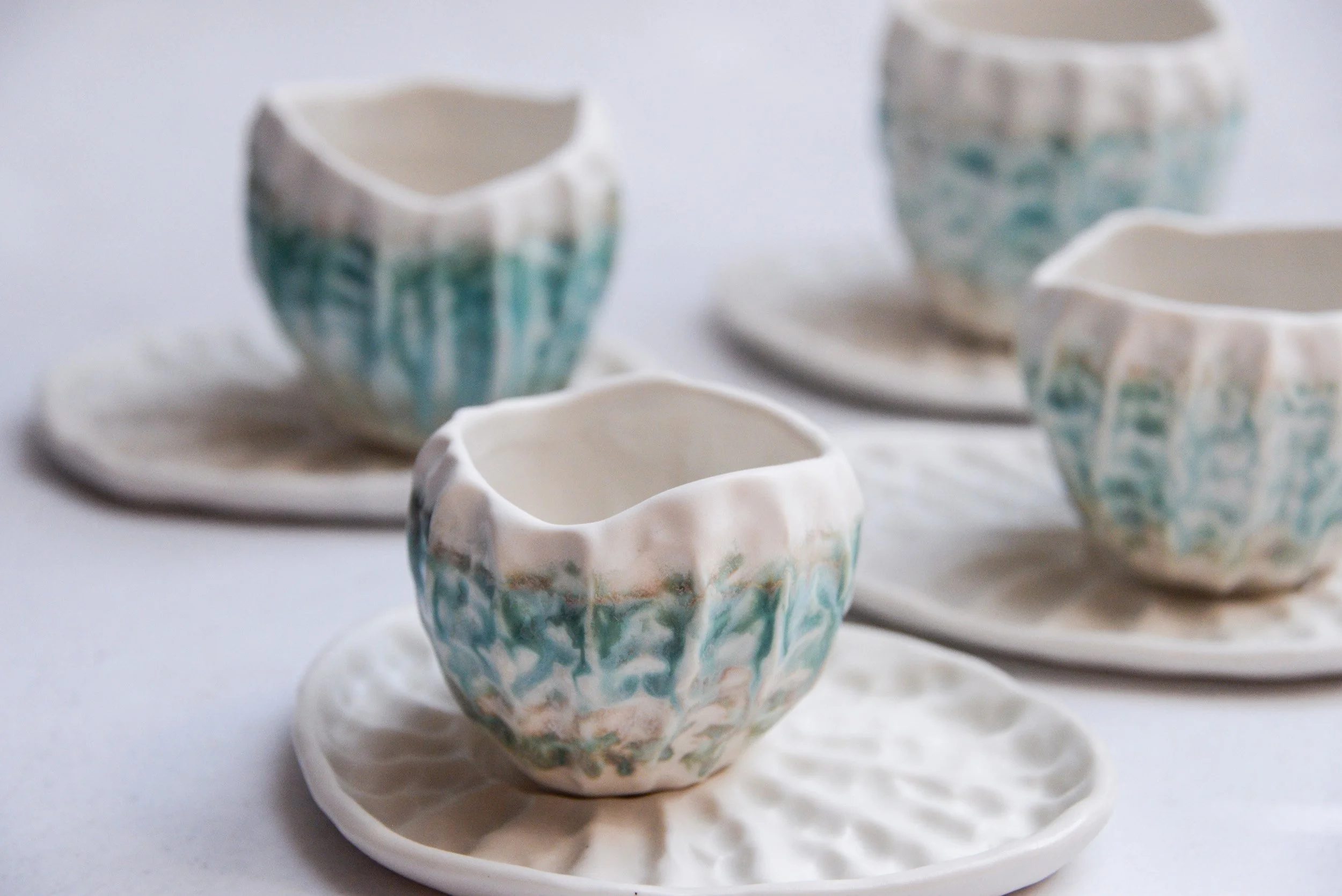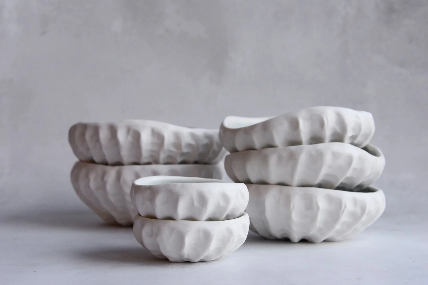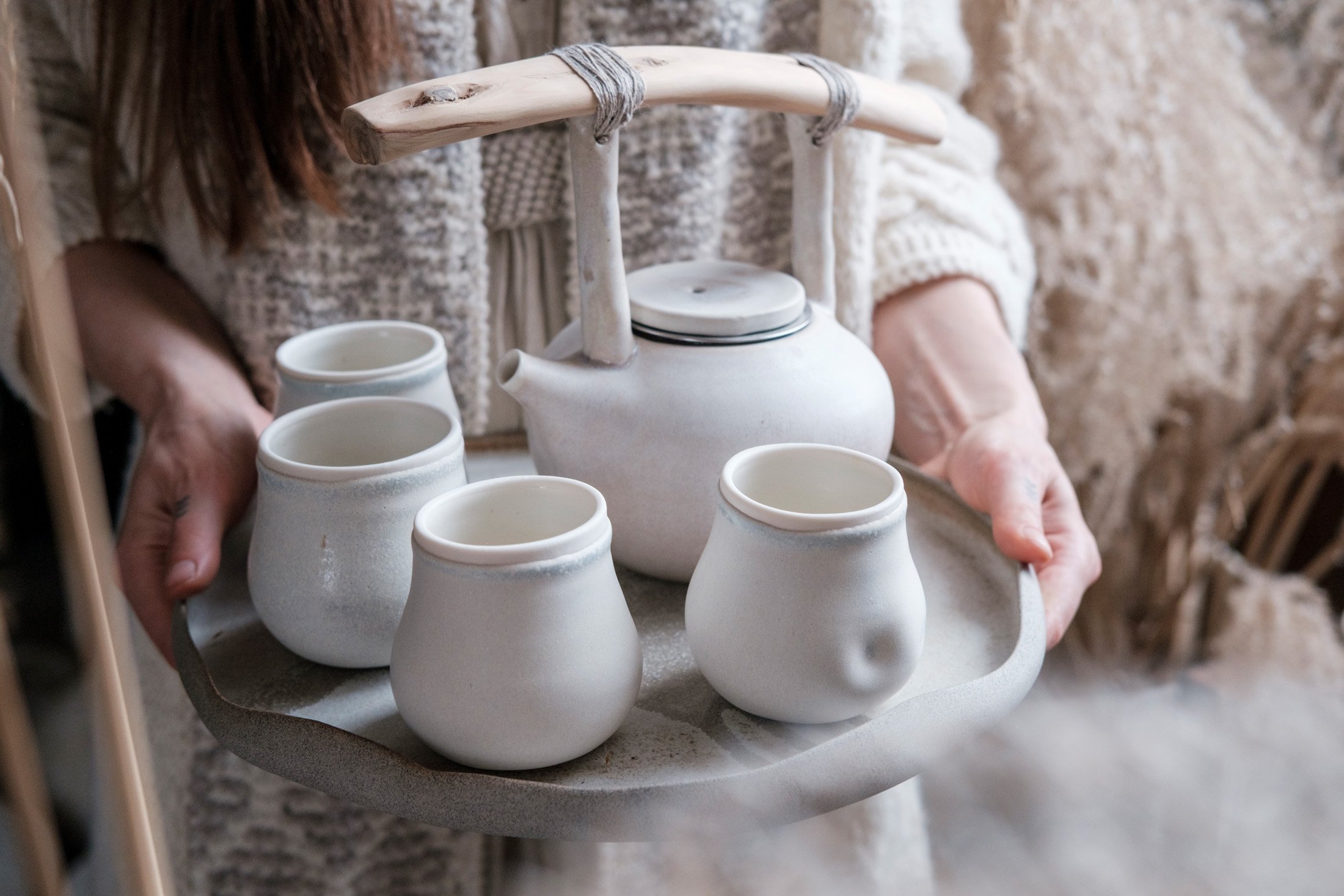 Wheel-thrown teapots crafted in porcelain, stoneware, and wood-fired black earthenware.