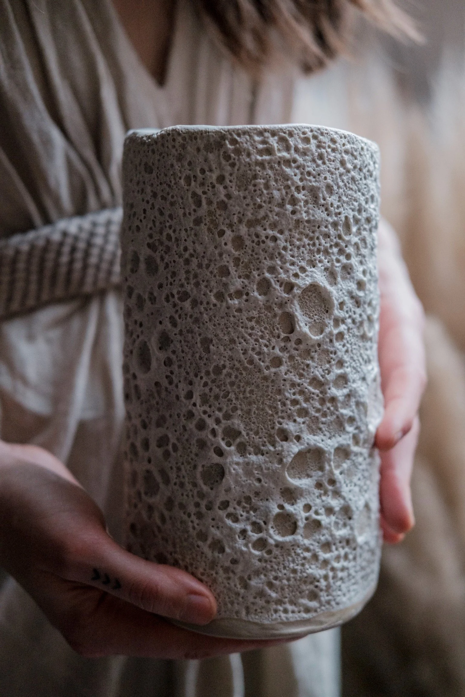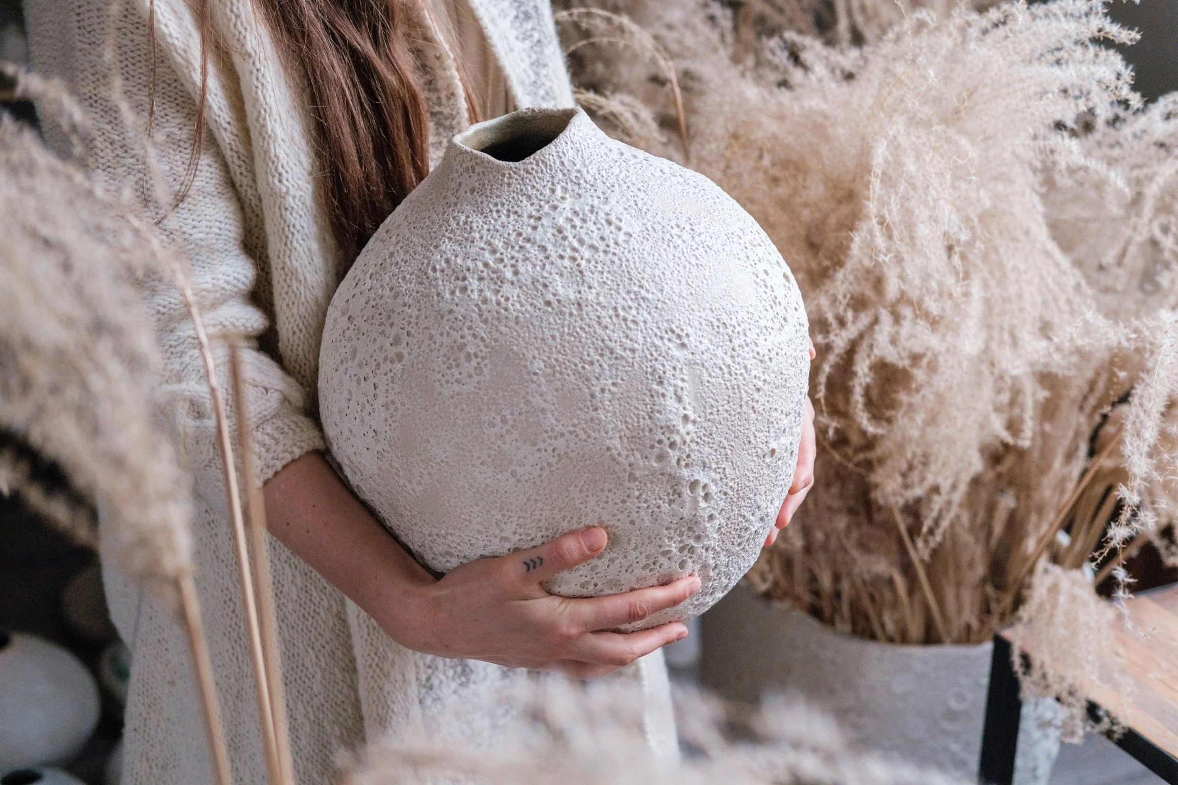 When the world finally began noticing those crater textures in my work — after nearly a decade of playing with them quietly — it felt like everything came full circle. The same glaze that first captivated me in that Falmouth library became the signature voice of the MOON Collection.