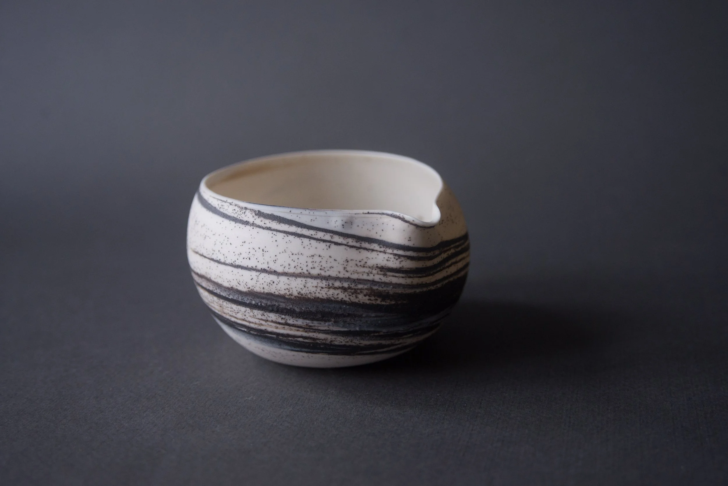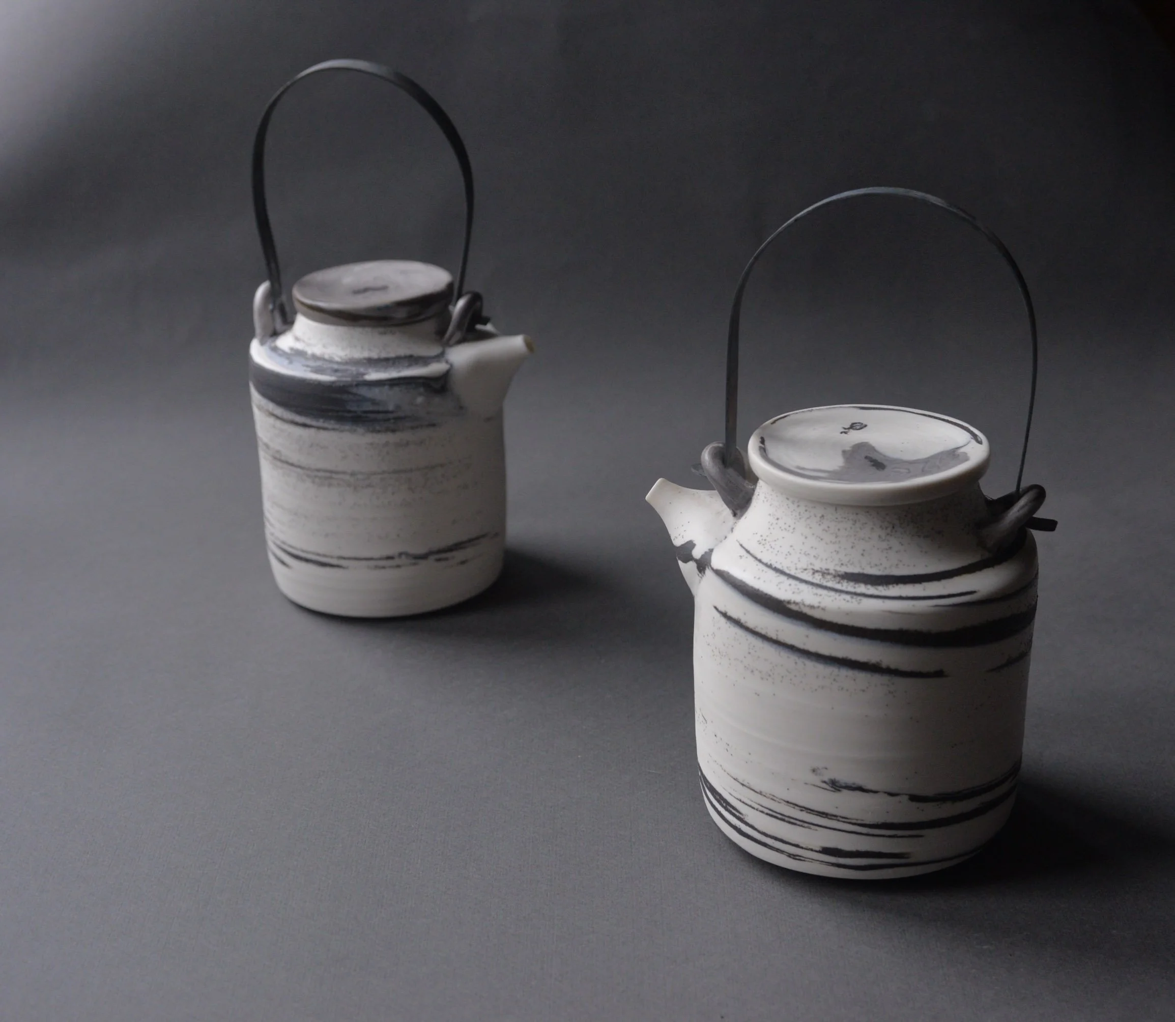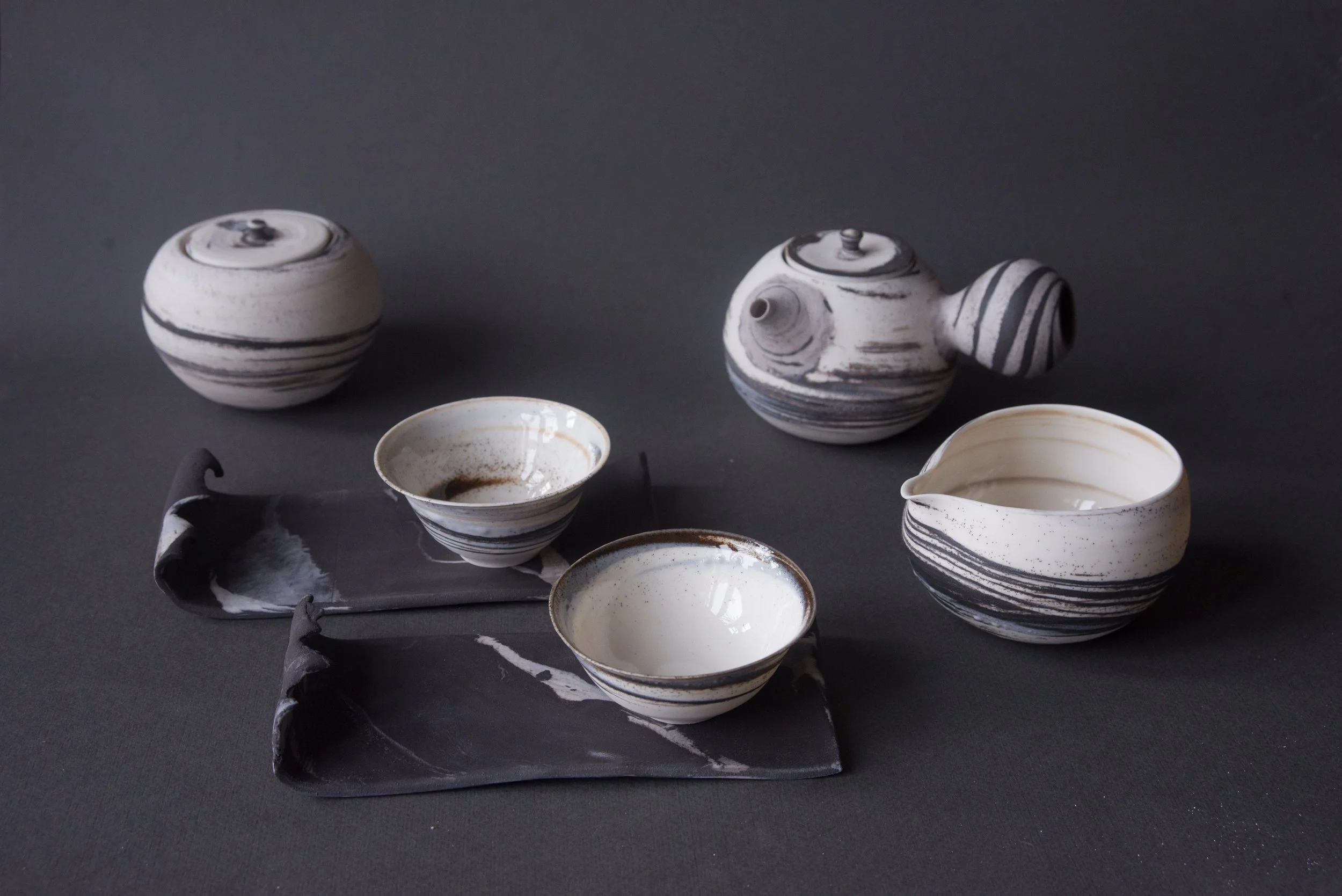 Porcelain with black stoneware → high contrast, graphic lines
