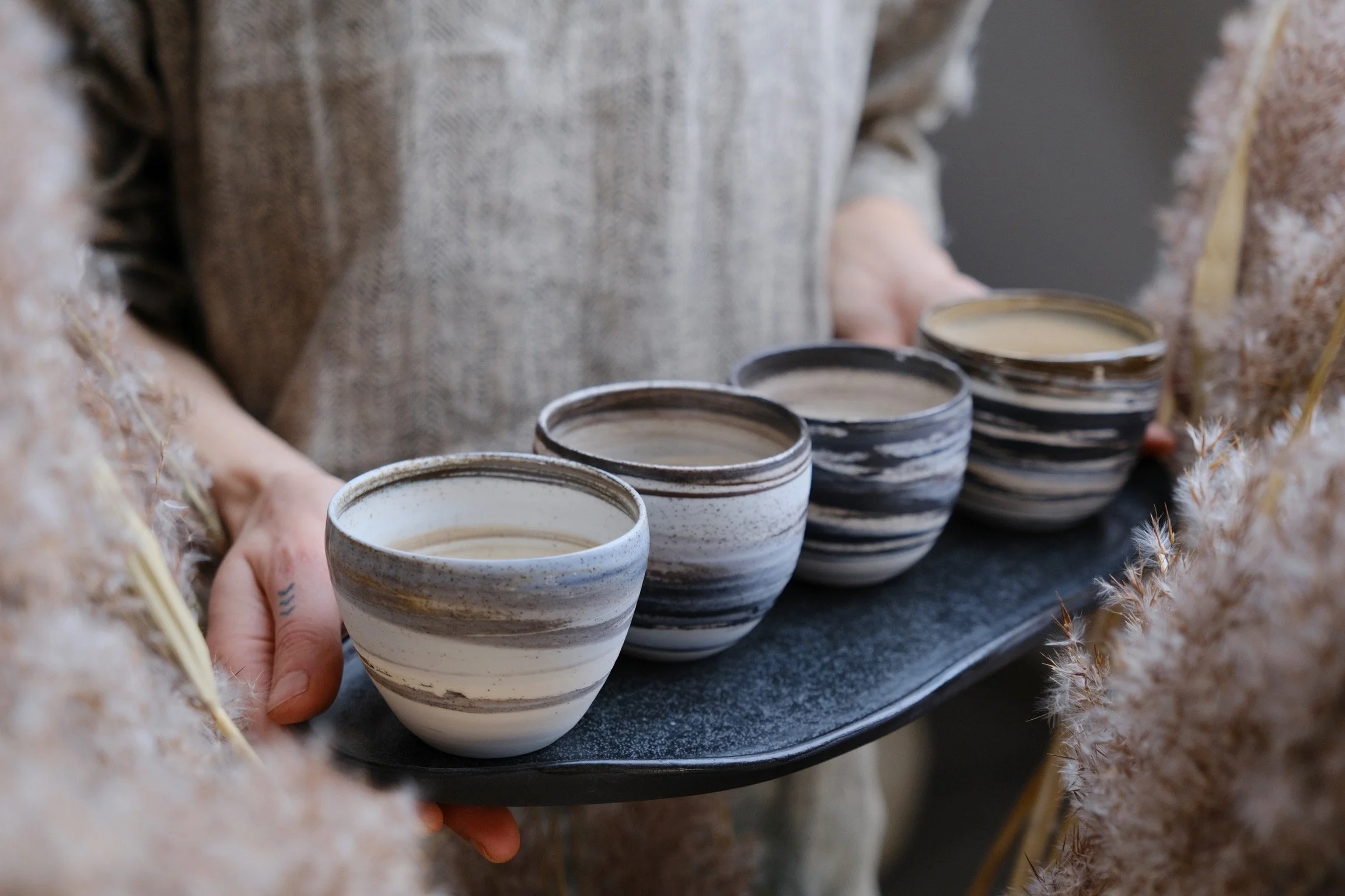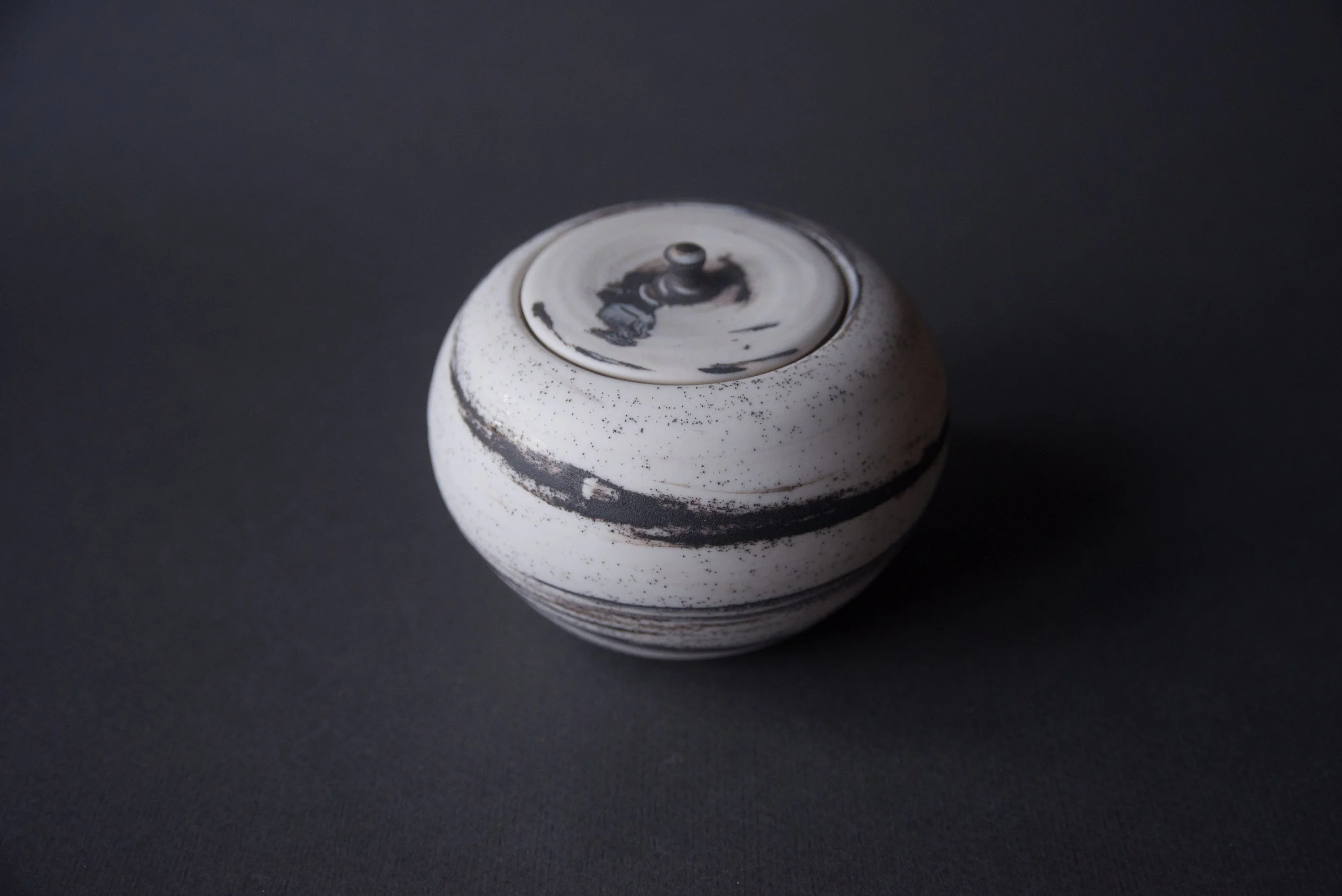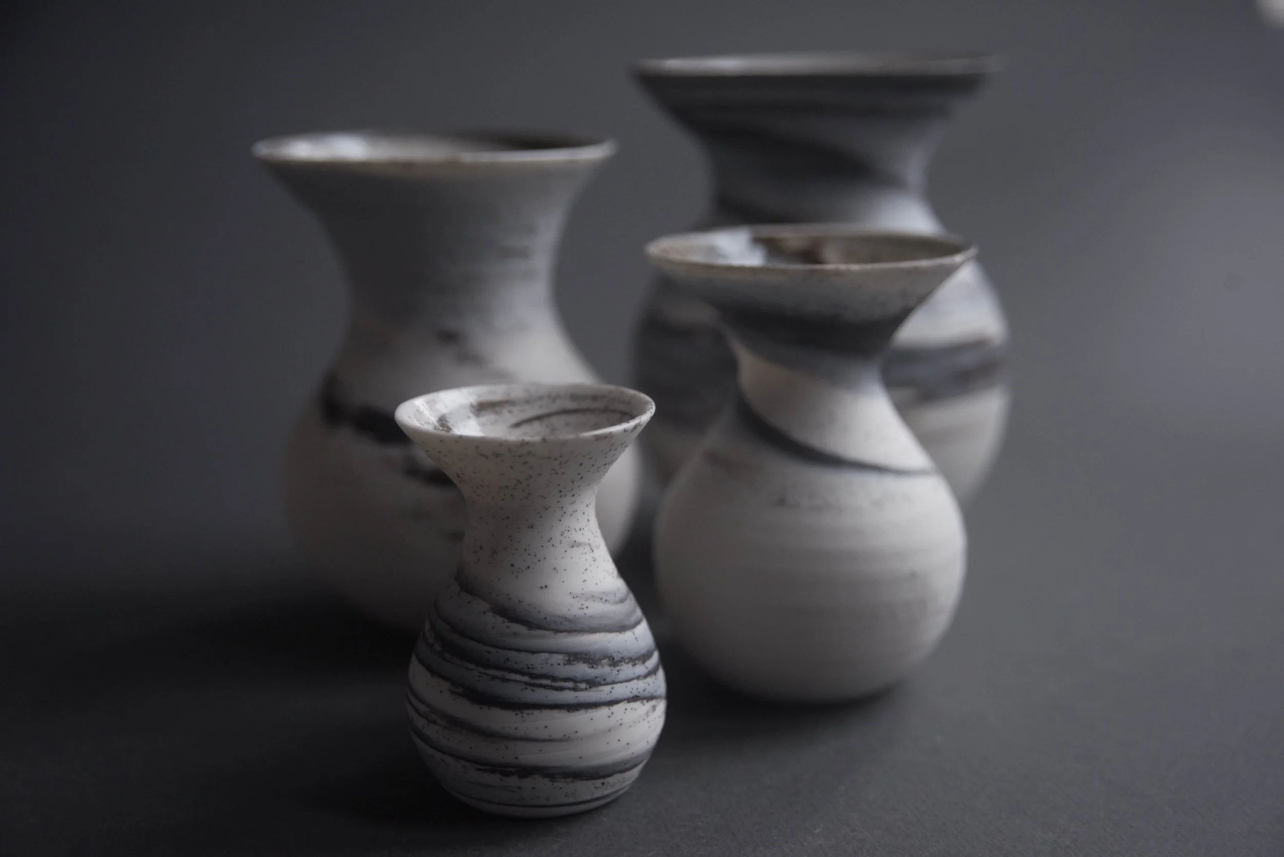 Porcelain with black stoneware → high contrast, graphic lines