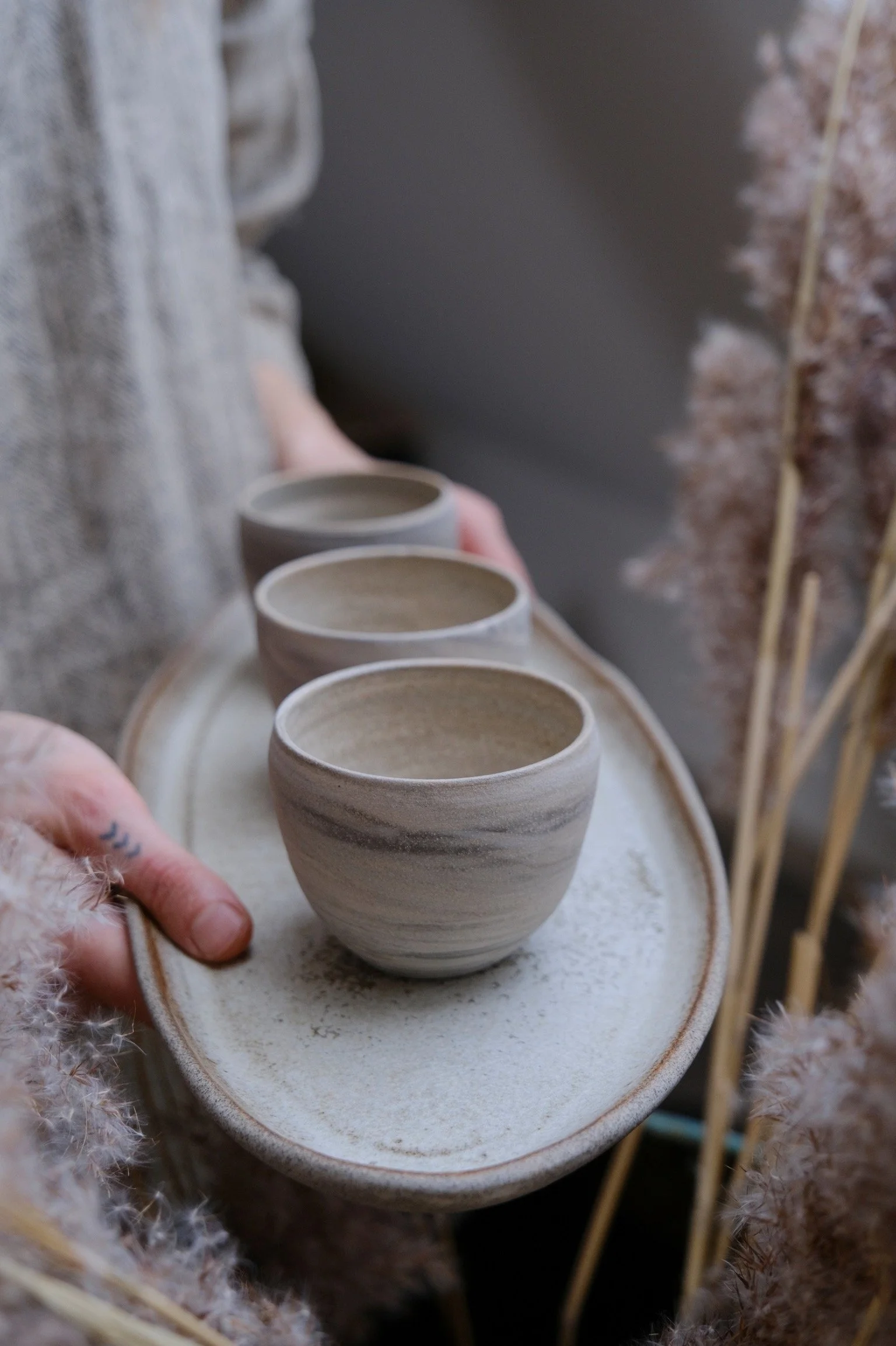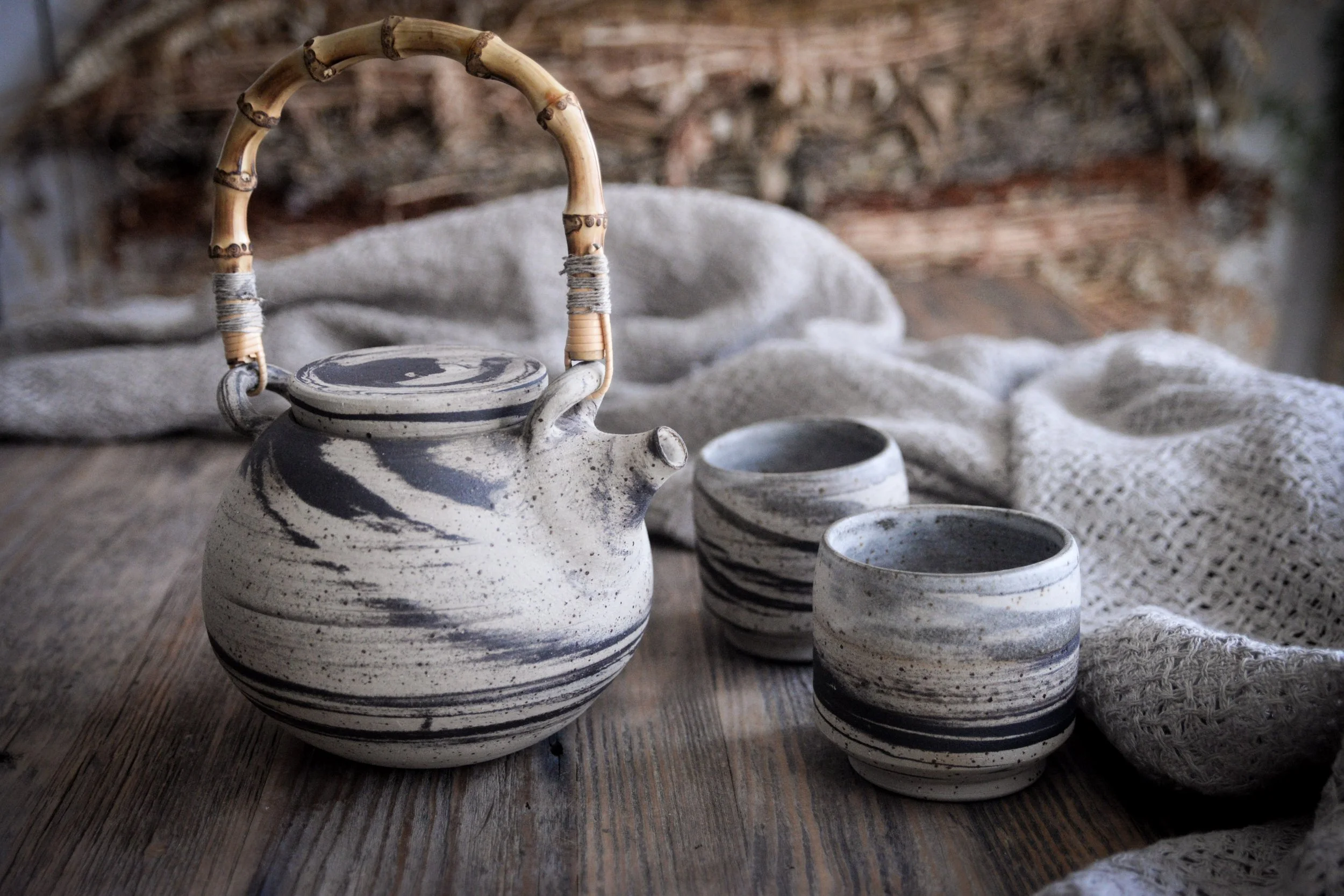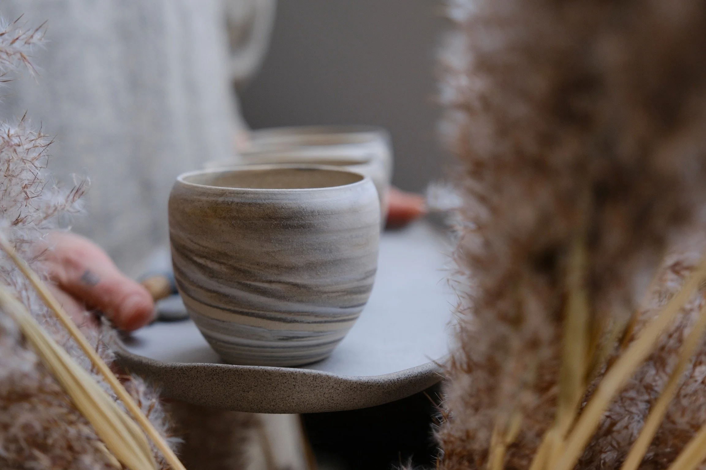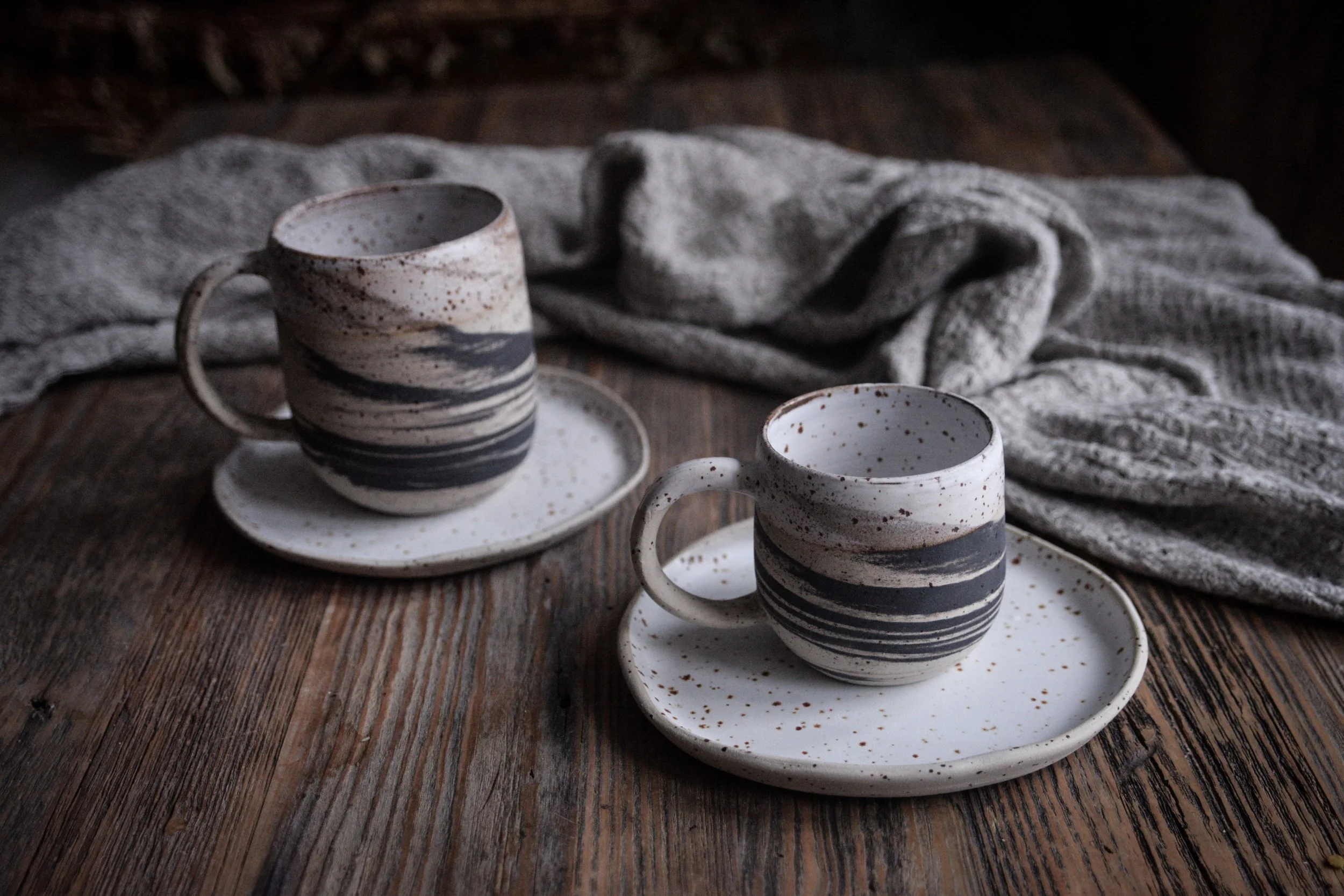 (Pictured: satin matte glaze. It softly covers the marbling inside, which I actually prefer. This isn’t a dry matte — it’s what we call a functional matte, with a smooth, cleanable surface where tea stains wash off easily.